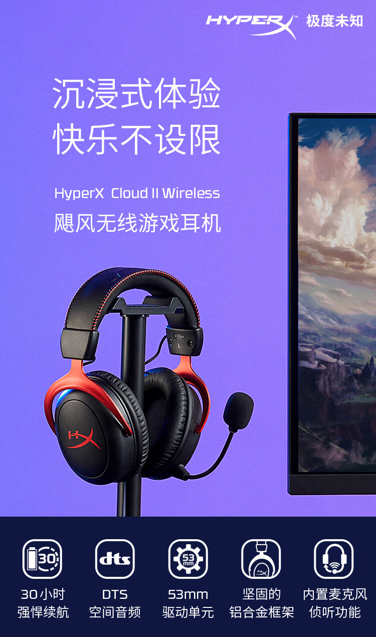 极度未知 飓风2无线虚拟7.1 电竞游戏耳机 电脑头戴式耳麦 笔记本吃鸡原金士顿 飓风无线 Cloud II Wireless