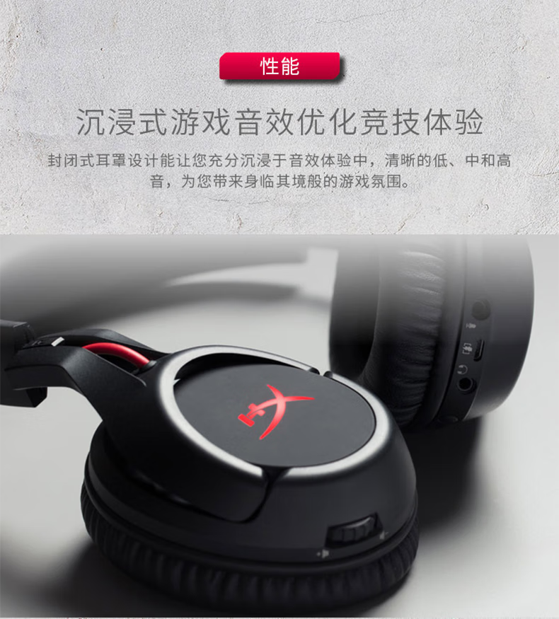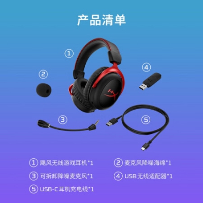 商品名称:极度未知 飓风2无线虚拟7.1 电竞游戏耳机 电脑头戴式耳麦 笔记本吃鸡原金士顿 飓风无线 Cloud II Wireless