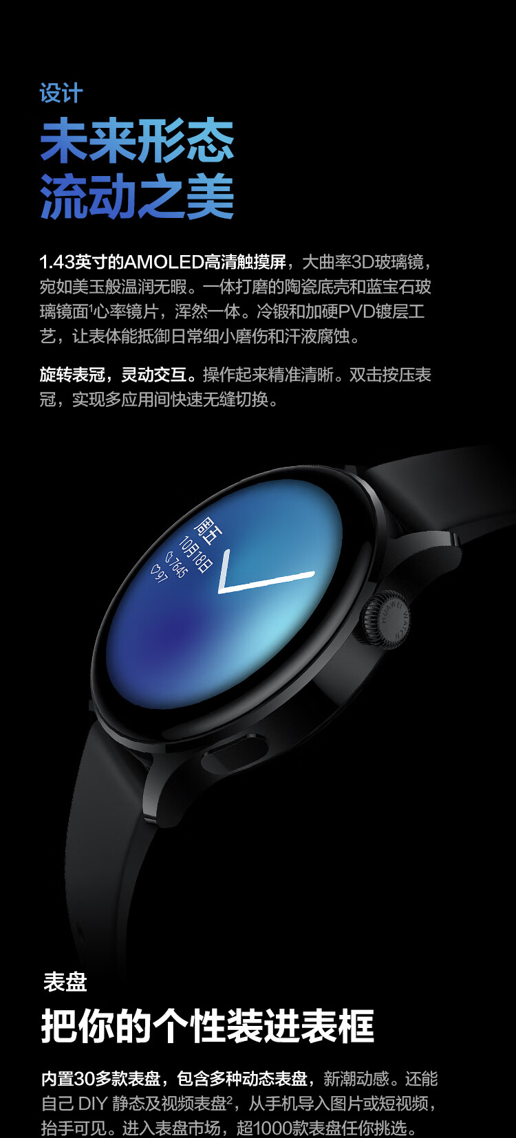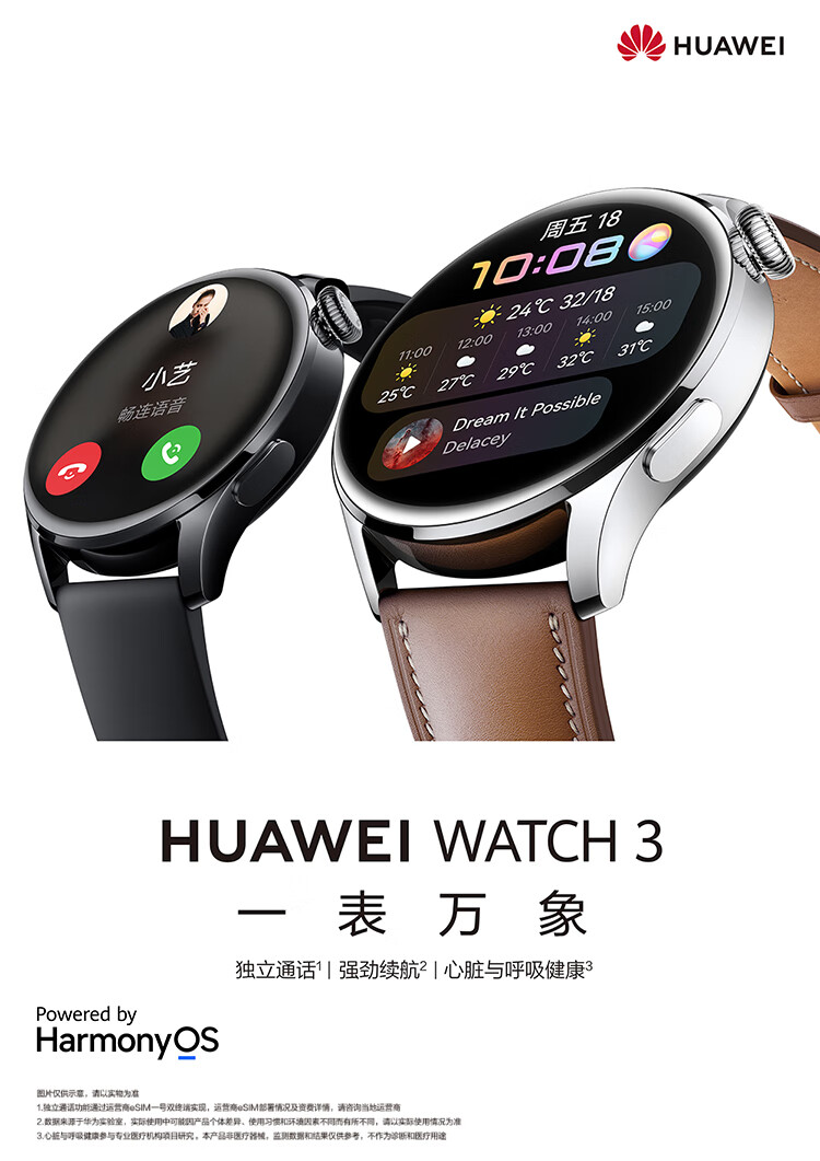 商品名称:华为HUAWEI WATCH 3 华为手表 运动智能手表 黑色 鸿蒙HarmonyOS系统 体温检测eSIM独立通话健康管理