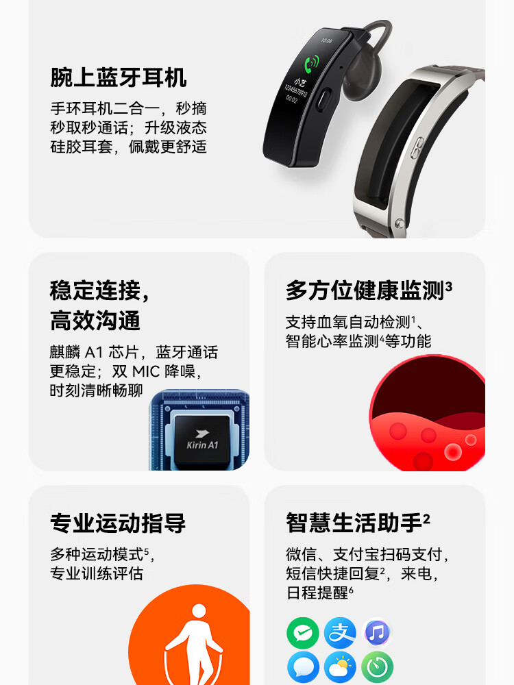 商品名称:华为(HUAWEI)通话手环 B7 运动手环 智能手环 血氧心率健康监测 腕上蓝牙耳机 专业运动指导 曜金黑