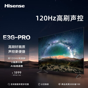 海信电视 55E3G-PRO 55英寸4K 120Hz防抖2+32G内存远场语音智能超薄全面屏液晶平板电视机 以旧换新