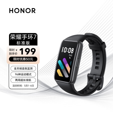 荣耀手环7 全天候血氧监测 96种运动模式 智能手环 运动手环 智能心率 50米防水 幻夜黑